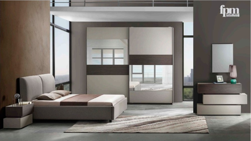 Ovaj set odiše elegancijom – od tapaciranog uzglavlja kreveta koje pruža udobnost i vizuelnu mekoću, do garderobera sa kliznim vratima i velikim ogledalima koja prostoru daju dubinu i svetlost.