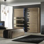 Set sadrži garderober sa ogledalima na frontovima i zlatnim završnim detaljima, pružajući sve što vam je potrebno za kraljevski ambijent.